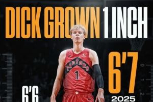体育资讯10月10日讯 在NBA官方数据中显示,猛龙球员迪克的身高达到了6尺7,也就是约201CM。